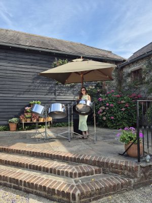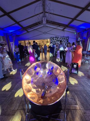 "We were lucky enough to have the amazingly talented Mica playing the steel pan at our wedding. With the guests out by the lake and the sun shining down on us her fantastic performance created a truly perfect atmosphere for our drinks reception.
